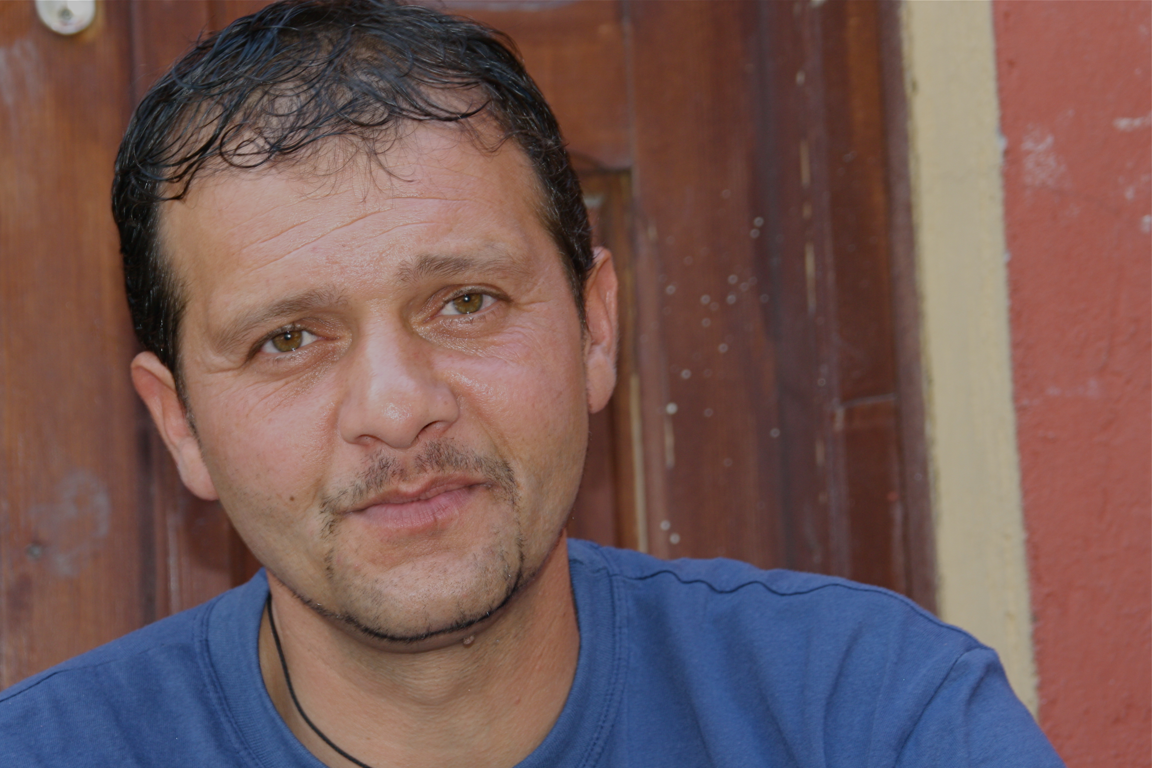 There are holes in the sides of his sneakers. He has a telephone, which he pulls out to show me. A chunky black Nokia from a decade ago, grey with bruises and scratches. It works, but needs a Simcard. He wants to call his daughter.