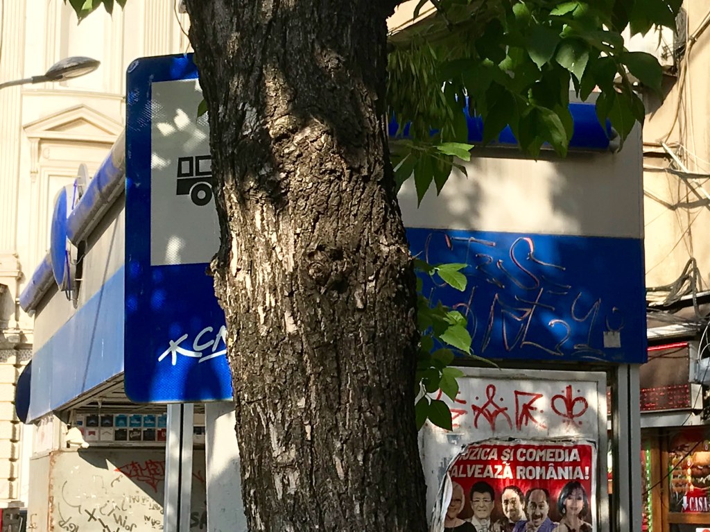 It is tough to find a bus stop in Bucharest. I don’t understand why the city hides them. On main thoroughfares, their shelters are concealed within adverts for banks, streaming services and telephone companies. In the less crowded areas, they are small metal lozenges nailed to a lamp-post, and are often twisted, busted, rusting, or obscured behind a tree.