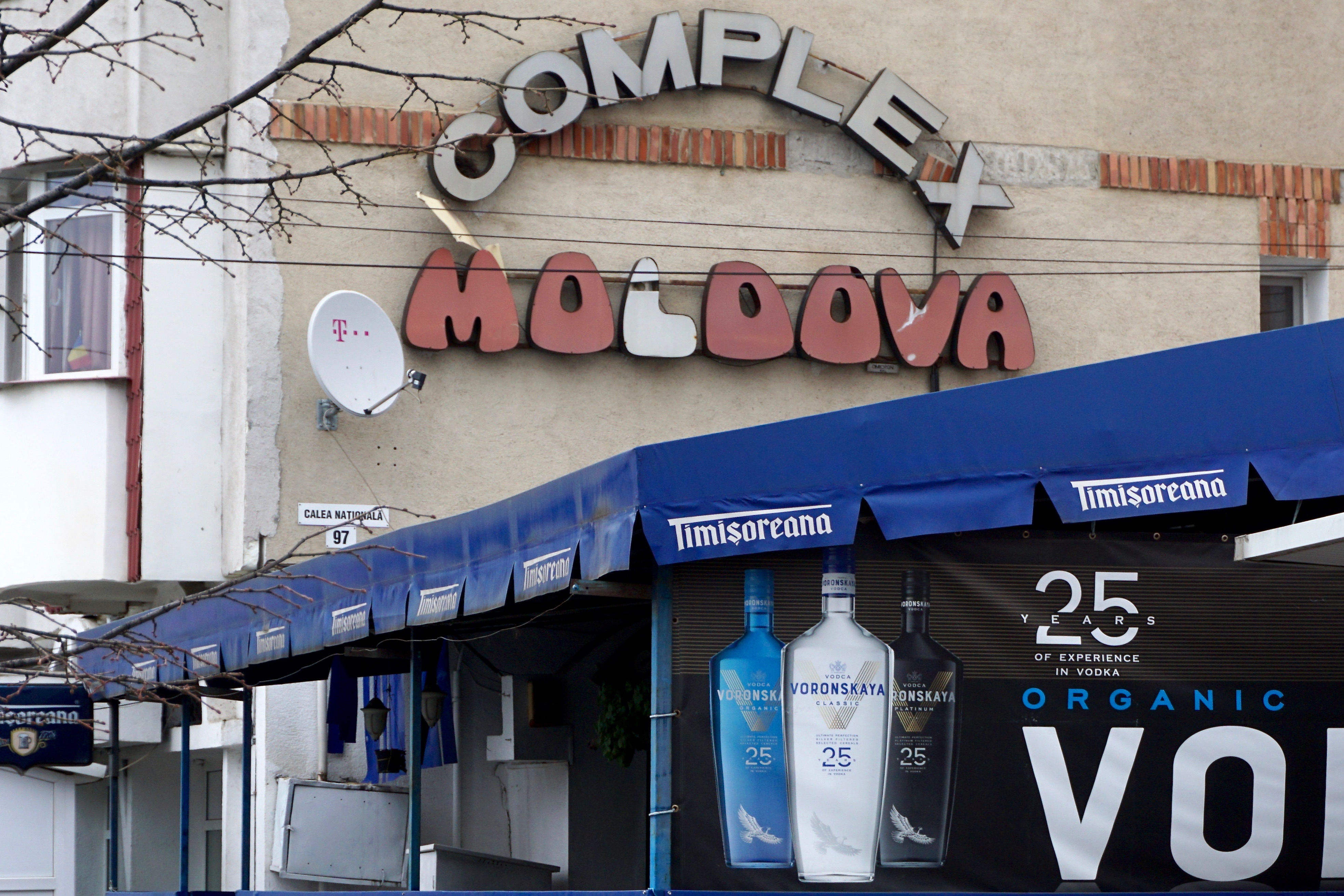 In the center of the northeastern Romanian city of Botoșani is a 1980s housing block, next to an awning for the country’s most popular beer, Timișoreana, and a loose plastic wall advertising a vodka brand, Voronskaya.