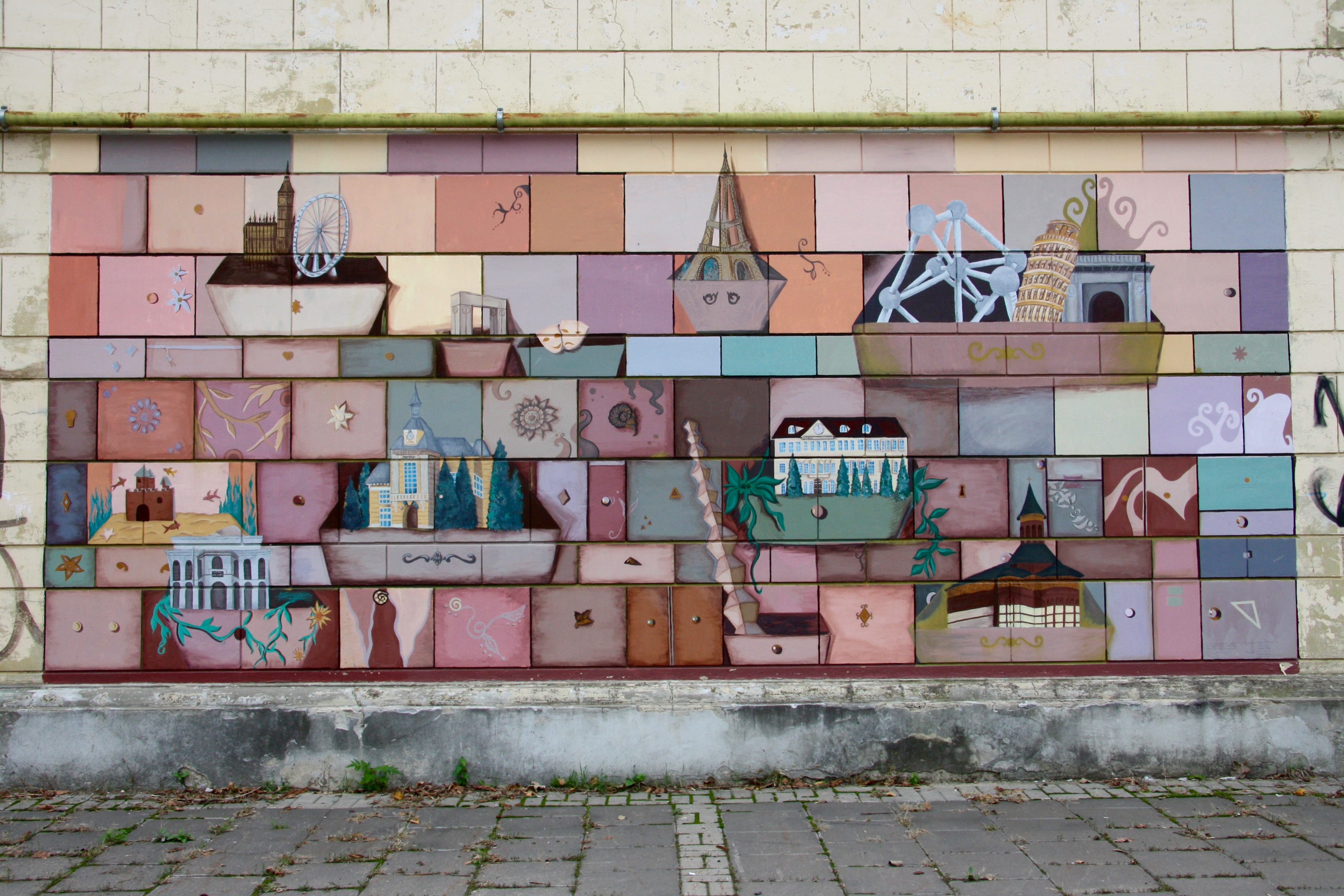 Mounted on its side wall are giant letters, in a bold font using a chunky 1990s style, which read ‘Complex Moldova’. Part of the “L” from the second word has peeled off, and fallen.