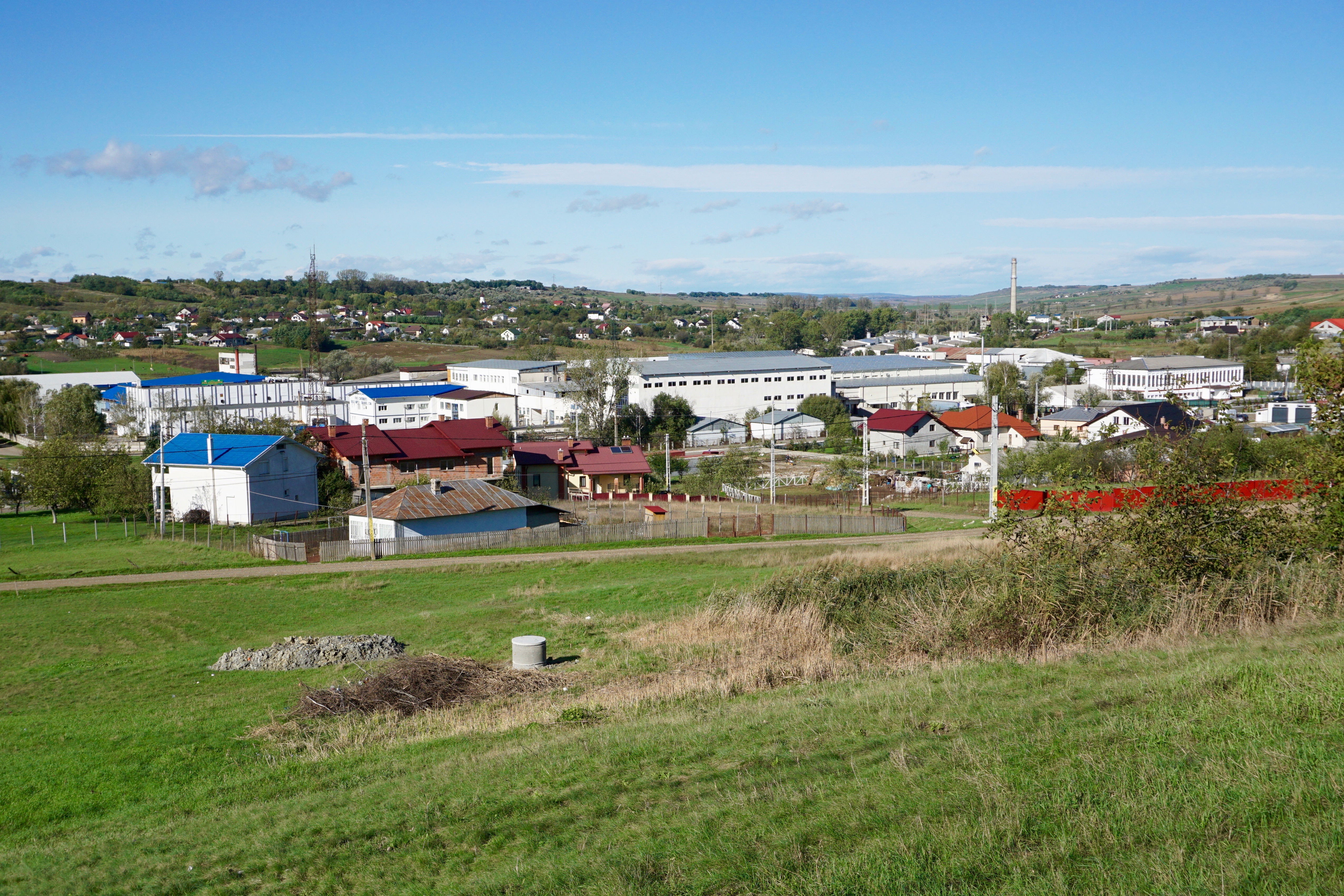The Dănilă cottage lies on a hill overlooking the river Sitna. From here, we can see unfinished houses with bright blue or red tiled roofs—the signs of recent prosperity. In the base of the valley stand the giant halls of the former slaughterhouse. Many of these have been renovated, as a dairy factory, a small abattoir and a distribution center, while others remain empty.