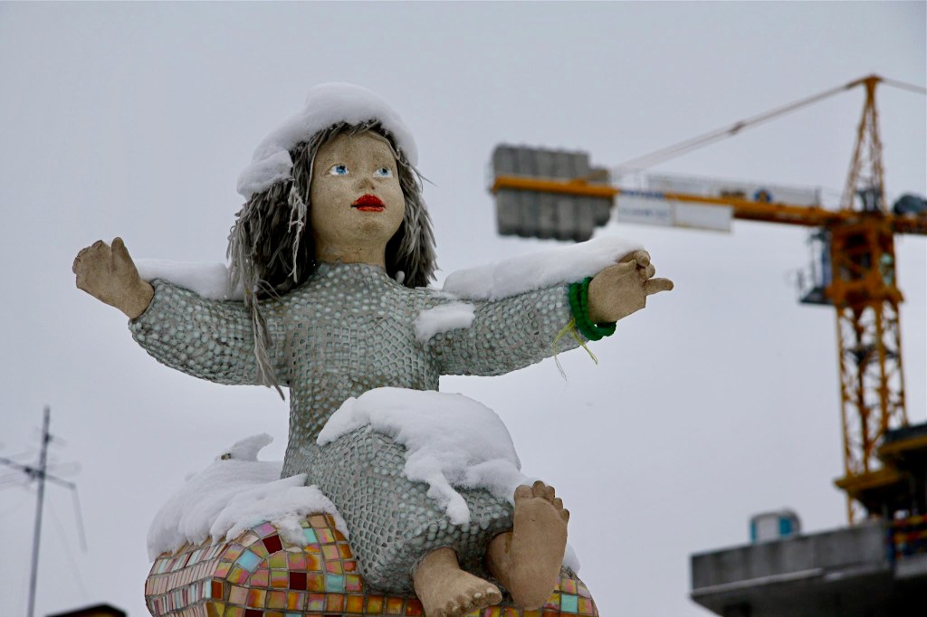 Kyiv remains a vibrant place. Buildings and sculptures match this. Take Hotel Salyut, a freestanding 1980s concrete block in the shape of a hand grenade, which has no stairs, but a winding path from the ground floor to the roof, like a helter-skelter, in one of the most playful examples of brutalism. Where the old town meets an overgrown park lies Landscape Alley, hosting sculptures such as a 30-meter hybrid of a blue cat and caterpillar, inspired by Alice in Wonderland. On the flat walls of blocks throughout the city are glorious murals by artists from around the world, celebrating Ukrainian culture, its tenacity and self-determination.