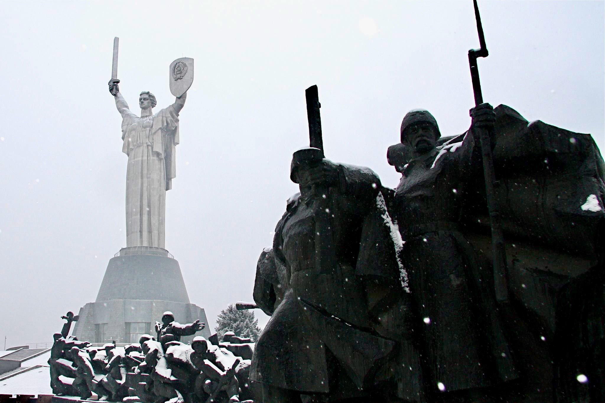The Battle of Kyiv hindered the German advance to the heart of the USSR, and when the Communists liberated the city in 1943, the Soviets granted Kyiv a “hero status”. This is celebrated in the Motherland Monument, a towering figure of a woman holding a sword and shield branded with the hammer and sickle, on the roof of a second world war museum, guarded by grim sculptures of men in battle. This shows how Kyiv was at the frontline, protecting the east against fascism. Today the city is in the same position, at the vanguard of a western defense against a different type of fascism, which may have a new face, but masks old beliefs.